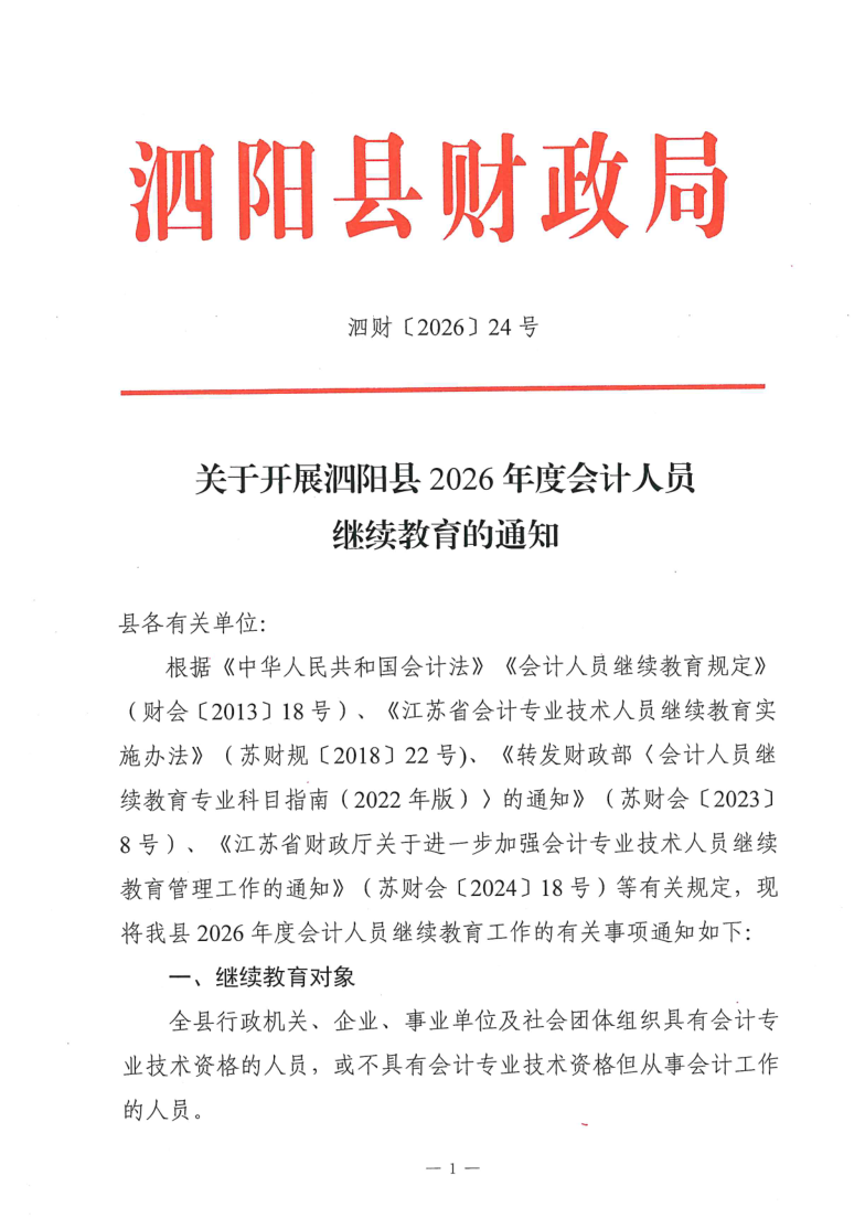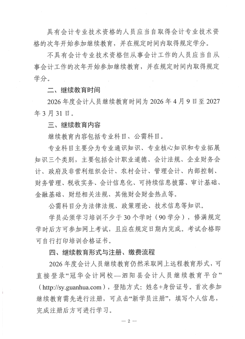泗阳县2026年度会计人员继续教育的通知